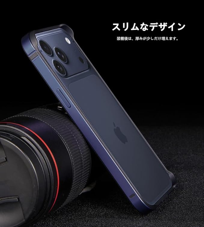内+外の材質:耐衝撃高金属質感のアルミバンパー+柔らかいシリコン=一体型 薄型側面バンパーケース!