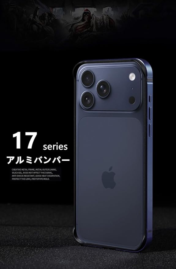 MQman iPhone17ProMax 用 アルミバンパー シリコン裏地 一体型 ストラップホール有り フレーム 薄型 レンズ保護デザイン シンプル メタルカバー (ディープブルー, iPhone17ProMax)