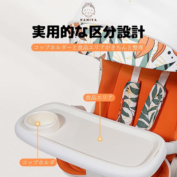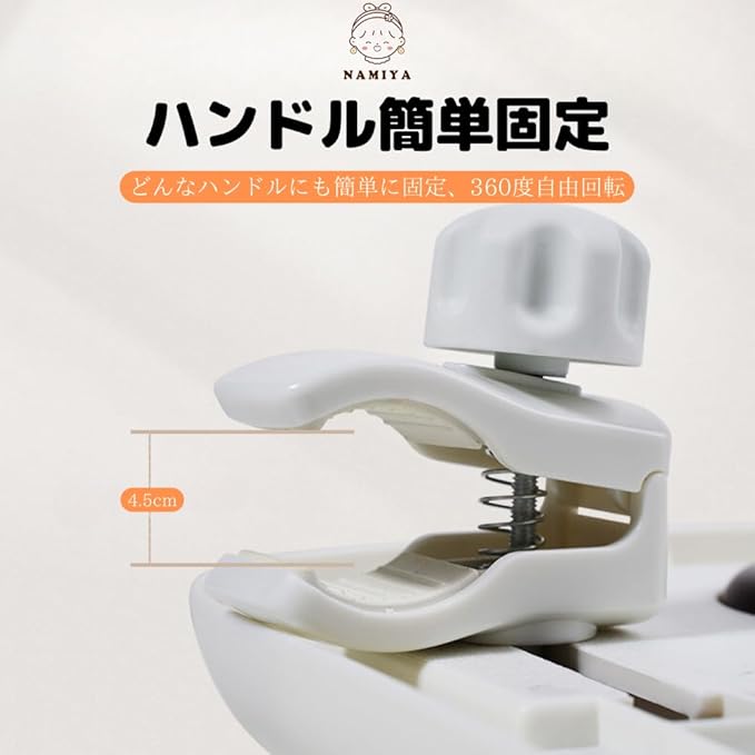 「NAMIYA」のベビーカー専用トレイは、お出かけをもっと便利で快適にするための設計。食事トレイは取り外し可能で、清潔に保ちやすい。ABS素材を使用しており、お子様の安全と健康を保護。さまざまなベビーカーに適合する2種類のクリップと、飲み物を安全に保持するカップホルダーも完備しています。お出かけがもっと快適に!