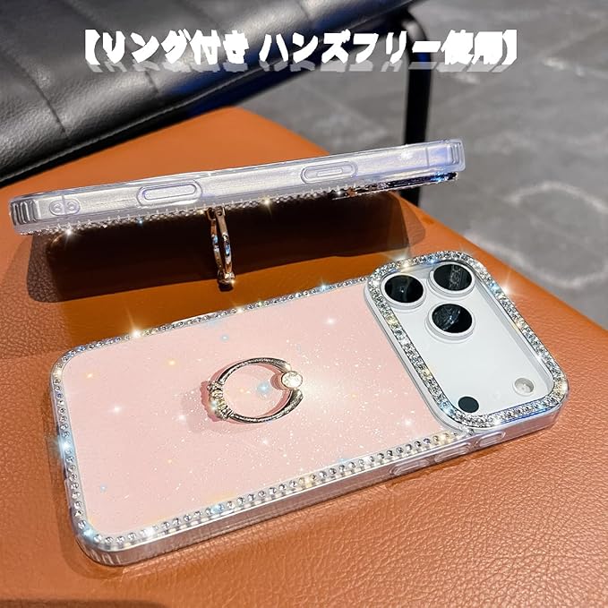 iPhone 17 Pro Max 用 ケース リング付き ドリル きらきら ブリンブリン かわいい スタンド機能 おしゃれ キャラクター 軽量 薄型 衝撃吸収 女性人気 ストラップ穴あり スマホケース アイフォン17プロマックス カバー (実色ピンク)