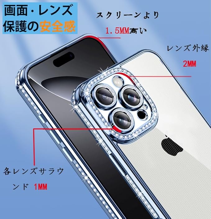 【ラグジュアリーなキラキラカバー】サイドのバンパーにはラインストーンが並び、正面から見ても、裏面から見ても高級感のあるデザイン。キラキラしている可愛いドリルが施されているので、スマホをファッションアイテムに変身させます。品の良いきらきらする感なのでどなたでもお使いいただけます。