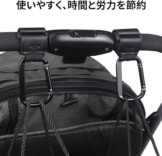 【利便性】鞄やベビーバッグを簡単にベビーカーに取り付けられ、必要なアイテムを手元に近づけることができます。軽量デザインで持ち運びも簡単で、外出時の負担を軽減します。
