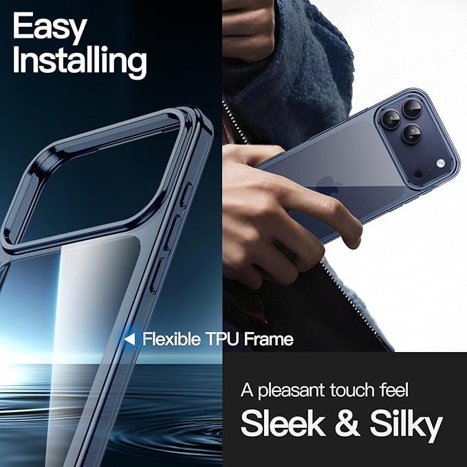 JETech iPhone 17 Pro Max 6.9インチ用 ケース 黄ばみなし 衝撃吸収 バンパーカバー 傷つけ防止 クリアバック (ディープブルー)