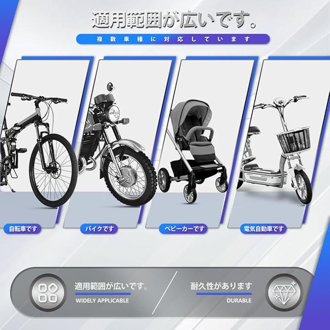 幅広い用途:自転車に取り付けるだけでなく、バイク、電動自転車、スクーター、トロリー、乳母車、車椅子などにも適しています。
