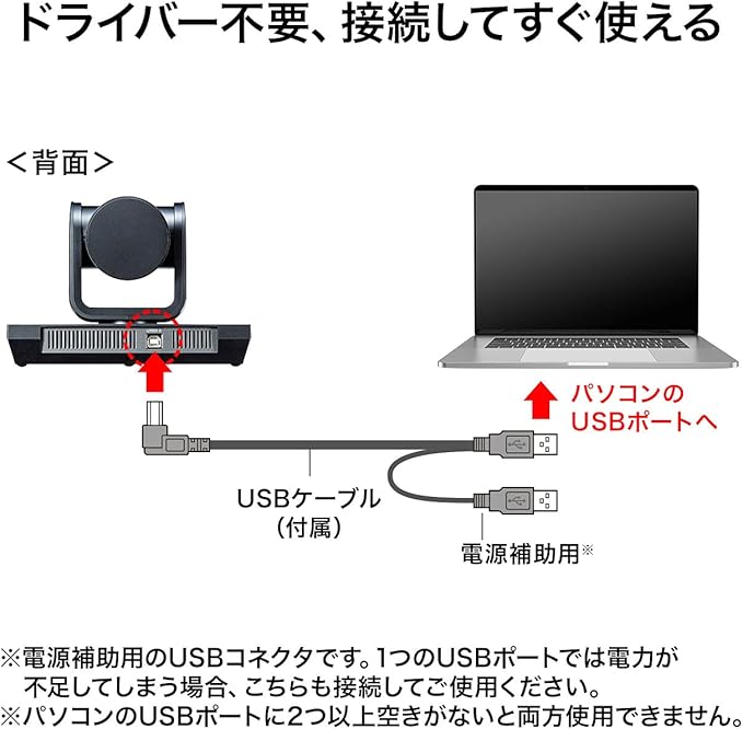 ●USBケーブルを接続するだけで高画質なビデオ会議が可能です。