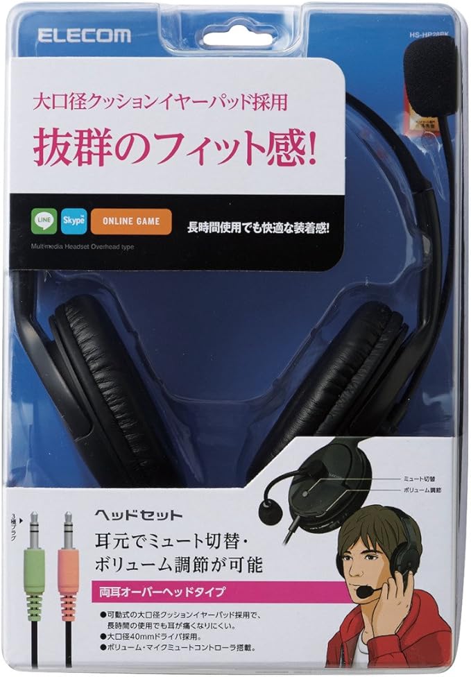 エレコム ヘッドセット マイク 両耳 オーバーヘッド 片出しケーブル 1.8m HS-HP28BK