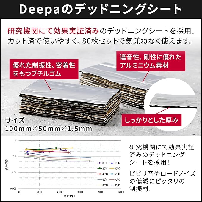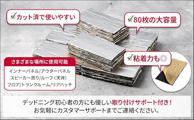 【Deepa Ribusu】デッドニングシート 制振材 80枚 カット済み デッドニング 遮音シート 防音シート 吸音材 防振 制震材 車 カーオーディオ 遮音材 (80枚)