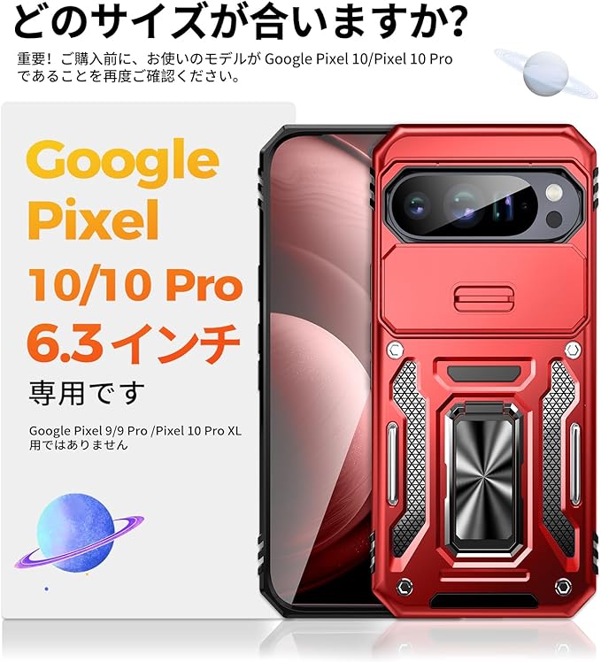 対応機種について: 本製品はGoogle Pixel 10/10 Pro専用設計のため、他Googleモデルには非対応です。※重要:背面金属リングにより、ワイヤレス充電機能はご利用いただけません。
