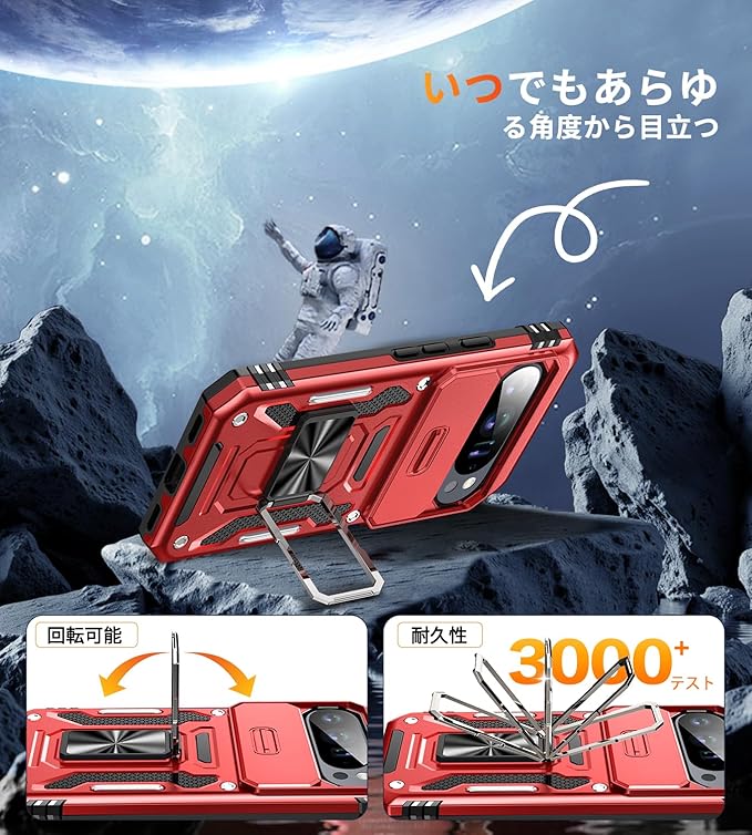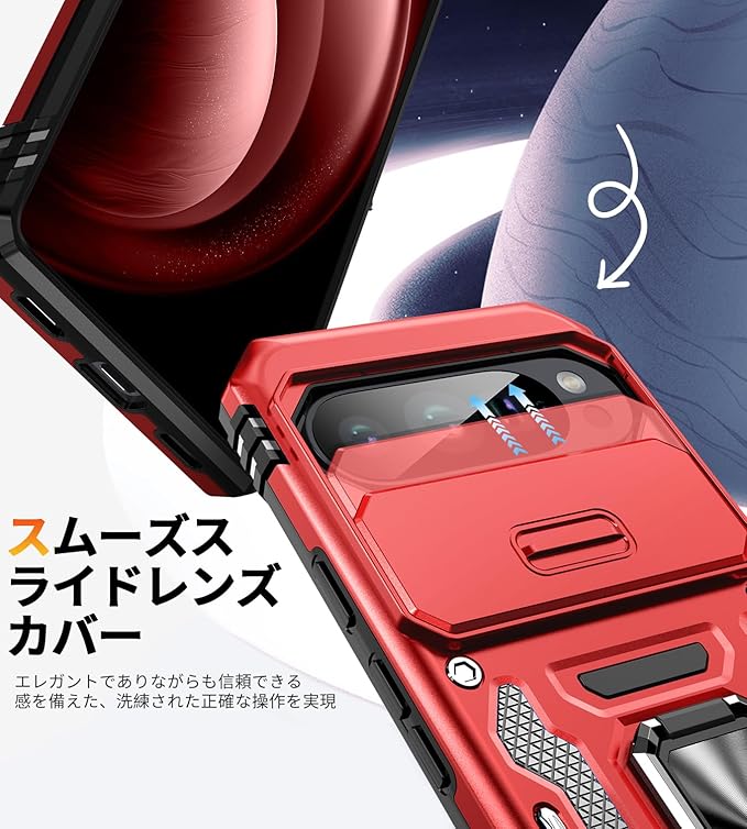 【米軍MIL規格 & スライド式カメラカバー】Pixel 10/10 Pro 用 ケース カメラ保護付【 360 回転 横縦両立・角度自由調整】指紋防止耐衝撃ヘビーデューティ 頑丈ケース 耐久性 SGS認証 Google Pixel 10/10 Pro 用