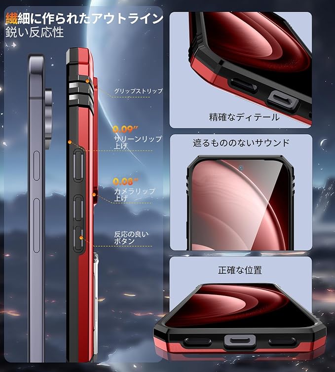 耐衝撃性能(軍事規格準拠): 強化PC枠+二層構造(ソフトTPU+ハードPC)の耐衝撃設計を採用し、落下、傷、衝撃、指紋、ほこりから全方位的に保護します。