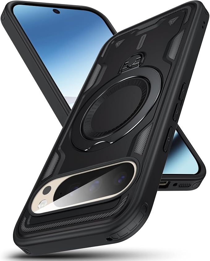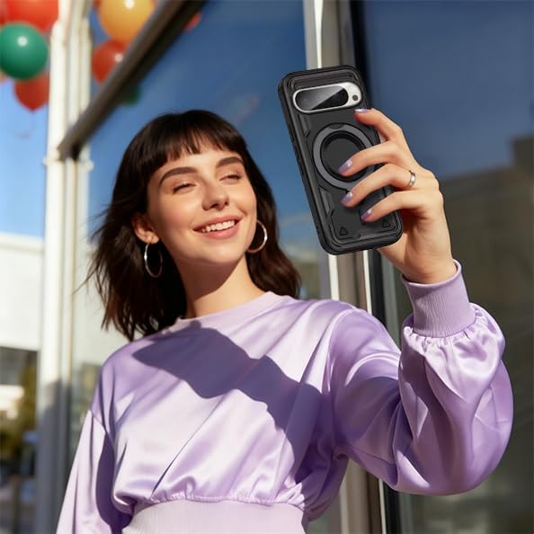 Google Pixel 10 / 10 Pro 対応 ケース リング付き レンズ保護 耐衝撃 スタンド機能 カバー PC+TPUバンパー レンズ保護 車載ホルダー ワイヤレス充電 ストラップホール付き 指紋防止 黄ばみなし 薄型 滑り止め 擦り傷防止 耐久 スマホケース ピクセル10 / 10 プロ 対応 携帯カバー 黒 SJ10.61