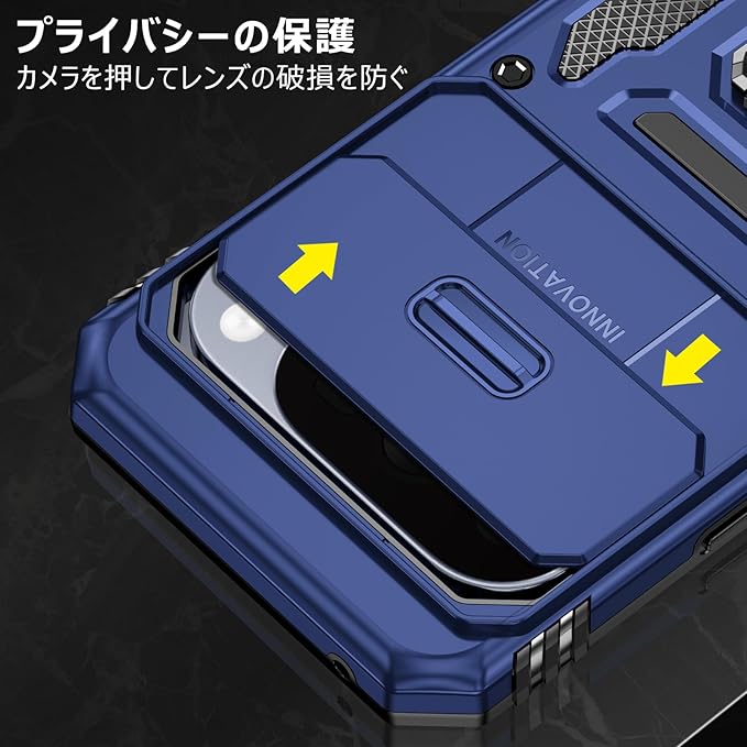 PNEWQNE 対応 Google Pixel 10/10 Pro 用のケース リング付き 衝撃吸収 耐衝撃 スタンド機能 米軍MIL規格 グーグル ピクセル10/10 pro 用のケース 全面保護 360 回転 滑り落ちにくい 人気 おしゃれ 携帯カバー 青 WY100-20