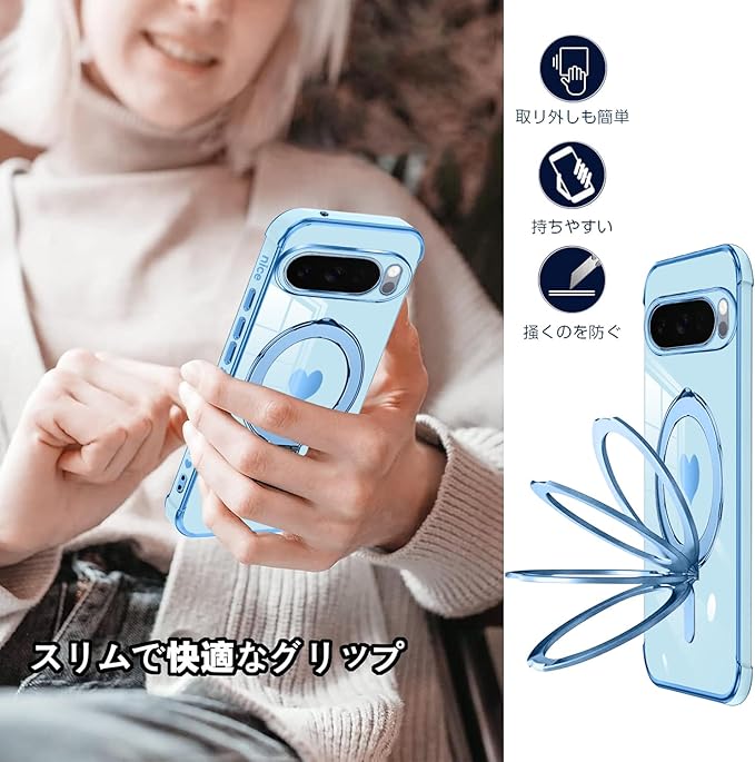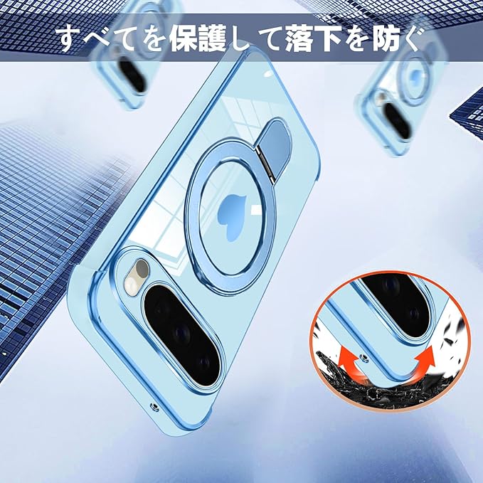 Google Pixel 10 / 10 Pro ケース MagSafe対応 リング スタンド機能 縦横両対応 ワイヤレス充電 レンズ保護 耐衝撃 携帯カバー グーグル ピクセル 10 pro カバー マグネット搭載 車載ホルダー マグセーフ対応 おしゃれ スリムケース ソフト シンプル(ブルー)
