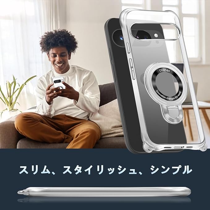 Google Pixel10 Pro XL ケース クリア ショルダー 透明 グーグルピクセル10 pro xl カバー リング付き pixel 10 pro xl カバー スタンド機能 マグネット搭載 耐衝撃 米軍規格 紐付き 斜めがけ 織りストラップ付き ネックストラップ ショルダー 縦/横 2WAY 長さ調整可能 取り外し可能 落下防止 紛失防止(シルバー)
