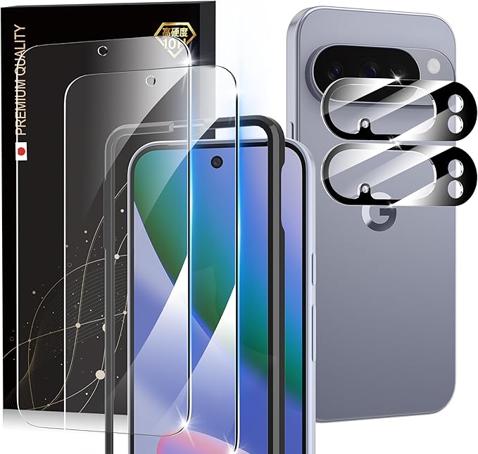 Google Pixel 10 Pro 用 ガラスフィルム(2枚) カメラフィルム(2枚) 保護フィルム ガイド枠付き 日本旭硝子採用 硬度10H強化ガラス 指紋防止 高光沢 高透過率 ピクセル10Pro 用 4枚入り