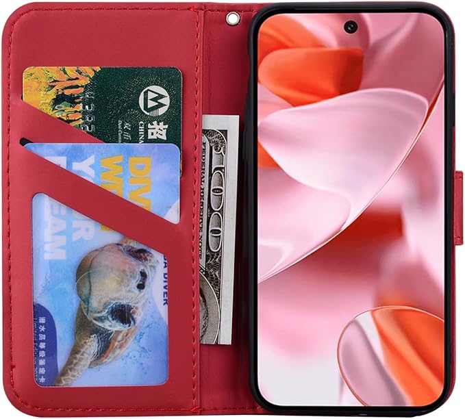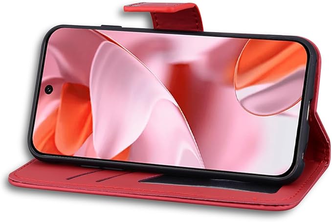 For Google Pixel 10/Pixel 10 Pro ケース 手帳型 お洒落 ピクセル10プロ/ピクセル10 スマホケース 耐衝撃 手作り 高級 PUレザー 携帯カバー 人気 おしゃれ かわいい 動物柄 カバー 軽量 スマホカバー カード収納 横置きスタンド機能 内蔵マグネット(6.3インチ)赤猫