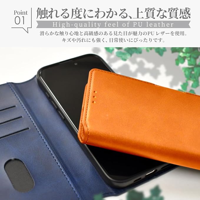 【上質な手帳型スマホケース】 本革調なのに高級感を演出してくれるフェイクレザー手帳型ケース!シンプルなデザインなので、ビジネスやフォーマルにもピッタリです。