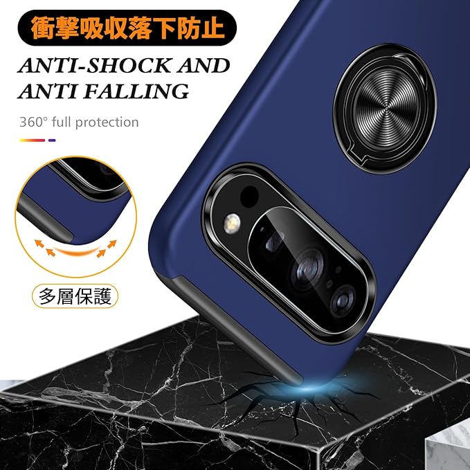 Google Pixel 10 / Pixel 10 Pro 対応 ケース リング 耐衝撃 米軍MIL規格取得 TPU+PC 衝撃吸収 カバー レンズ保護 リングつき 指紋防止 360 回転 車載ホルダー対応 スタンド機能 防塵 薄型 落下防止 擦り傷防止 10/10 Pro 携帯電話カバー 青C85-pix10-03