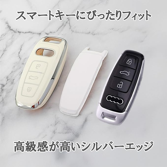 アウディ 対応 キーケース キーカバー TPU 汚れ 傷 防止 Audi A1 A3 A4 A5 A6 A7 A8 Q2 Q3 Q5 Q7 R8 S3 S4 S5 S6 S8 SQ5 TT TTS 専用 スタイリッシュ リモコンキー カラビナフック付き