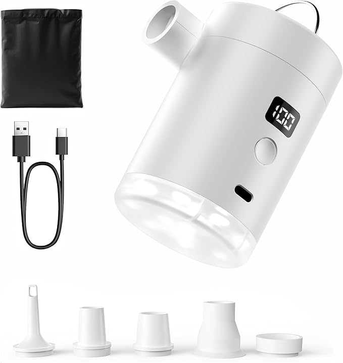 【空気入れ&空気抜き 両対応】風密度450L/分と強力で、5000paの空気入れる圧力と4000pa空気抜く圧力により、エアマットレスを素早く空気入れることができます。 キャンプ、アウトドアでこれがあれば準備が楽ちんです。また、ノズルを付け替えることで、迅速に圧縮袋の空気を抜いて、収納スペースを50%以上節約でき、アウトドア用品や衣類を保管するために多くの時間とスペースを節約することを実現できます。 ライトの使用方法:二回リックして、ランプが点灯;一回リックして、二段階の明るさを調整;また、二回リックして、ランプが滅灯!