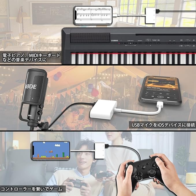 【マルチデバイス対応】iPhone14ProMax/14Pro/14Plus/13/13Pro/13ProMax/12ProMax/12Pro/12/11/Xs/8/7/6/5/5S/SEおよびiPadAir/Mini/Pro用。タブレットからusbアダプタまで標準の写真フォーマットやJPER、RAW、SD、hdビデオフォーマットに対応しています。カメラ、マウス、キーボード、USBメモリ、カードリーダーなど、USB周辺機器を接続することもできます。
