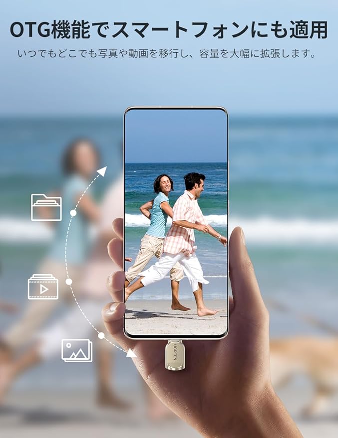 OTG機能でスマートフォンに最適:タイプC OTG機能によりAndroidスマートフォンやタブレットにも適用します。USB-Cポート経由でスマートフォンの容量を大幅に拡張できます。また、いつでもどこでも写真や動画を移行し、容量不足を心配ありません。