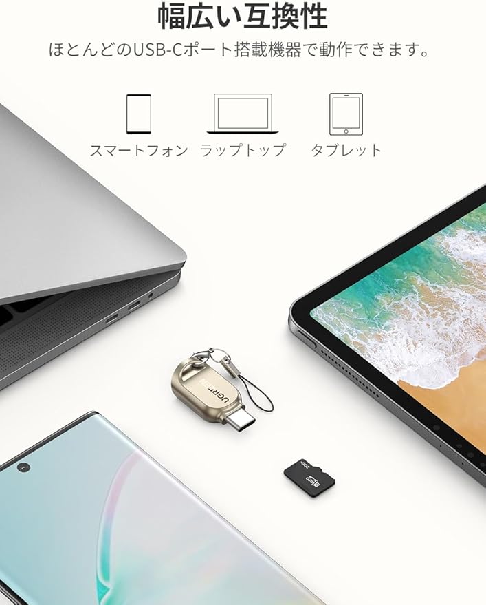 UGREEN microSD USB C カードリーダー TF マイクロSDカード リーダー 超小型 高速転送 タイプC OTG対応 Android iPadOS Windows MacOS Linux対応 亜鉛合金