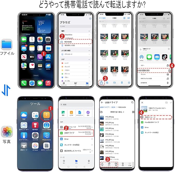 【簡単な操作】不要でデータ通信制限を気にすることなく、カードリーダーを接続するだけで、簡単にデジタルカメラで撮影した写真を携帯電話、パソコンに転送できます。OTG機能対応で、パソコンがなくても、データーの即転送が可能です!旅行中、いつでもお気に入りの写真やビデオを家族や友人と、またはソーシャル アプリで共有できます。もし何のご不明点とご問題がございましたら、お気軽に弊社にメールでご連絡ください。