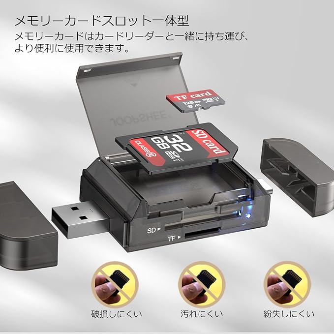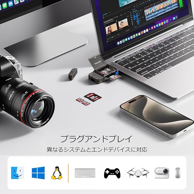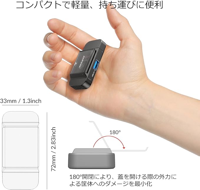 マルチフォーマット対応】SD、SDXC、SDHC、MMC、RS-MMC、Micro SDXC、Micro SDHCカードに対応。USB-AまたはUSB-C接続によるダッシュカムや監視システムからの写真、ビデオ、データの転送に最適です。