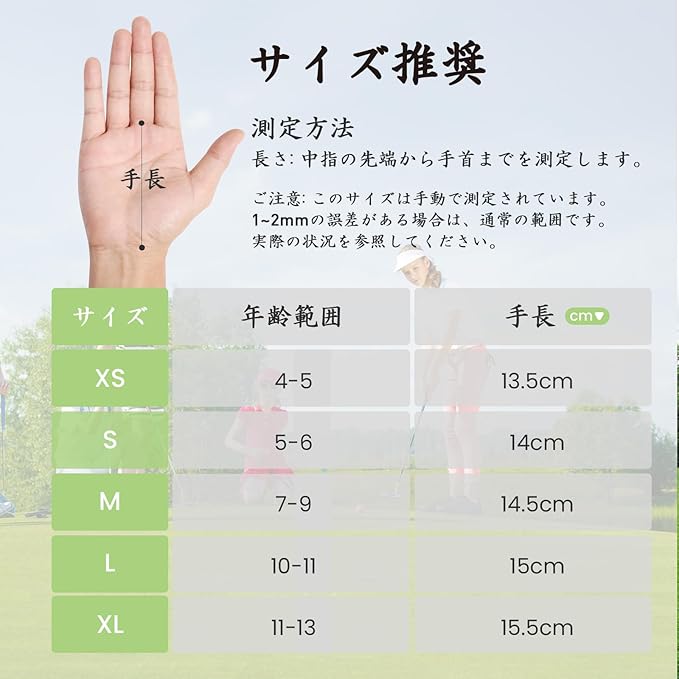 【スキルアップに最適】:自宅や屋外で練習する子供(男の子、女の子両方)に最適な選択です。比類のないグリップ性能と全天の快適さを備えており、ゴルフレッスンの始めに最適で —— 幼い学習者にとって理想的な最初の手袋のペアとなります。
