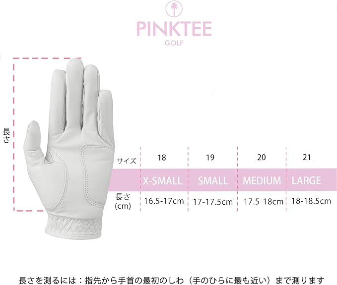 複数のサイズをご用意: PINKTEE レディース ゴルフ グローブは左利き用タイプです。手袋のサイズは、18、19、20、21 の 4 つあります。生地は柔らかく伸縮性があり、ほとんどの女性ゴルファーに適しています。