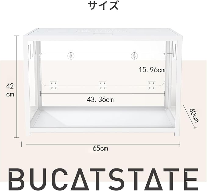 BUCATSTATE ハムスター ケージ メタル製 65cm クリア 透明 水槽タイプ 2つ扉 フロントドア最適化 組み立て簡単 耐久性 安定感 おしゃれ 大型サイズ ゴールデンハムスター キンクマ ハリネズ 爬虫類など 小動物用 ホワイト W65 D40 H42cm