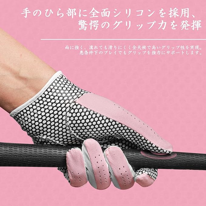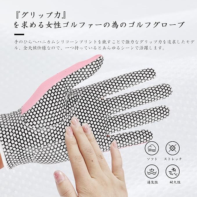 ゴルフグローブ レディース 両手 マイクロファイバーレザー シリコングリップ 驚愕のグリップ力を発揮 ソフト 伸縮 通気 耐摩耗性 滑り止め 雨 汗に強い 全天候モデル NFH16