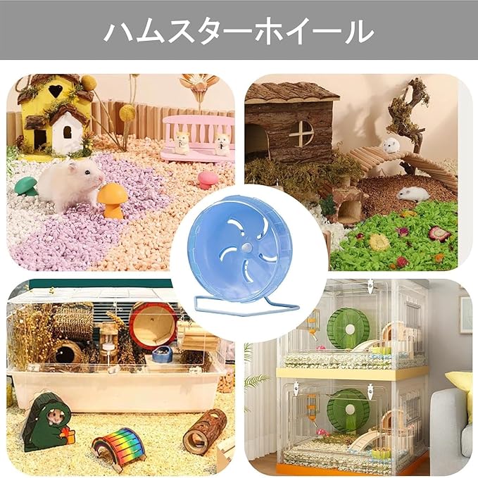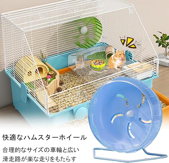 ハムスター 回し車 静音 サイレントホイール 置き型 21㎝ 楽な遊び場 簡易組み立て 運動 ストレス解消 ゴールデンハムスター ドワーフハムスター キンクマ 小動物用 (スカイブルー, 21cm)