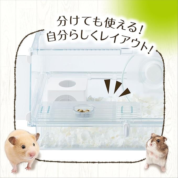 かわいいしぐさがもっと近づく! ハムスターのかわいいしぐさをもっと近くで楽しめるステージ。 グラスハーモニー450専用。 お皿&トンネル付で食べたり、のぼったりと生活空間が充実! ケージにしっかり固定可能(グラスハーモニー450Nに設置した場合)。 丸洗いできていつも清潔。 グラスハーモニー450シリーズ(別売)専用です。他のケージには取り付けできません。ケージに固定できるのは450Nシリーズの見です。 <対応グラスハーモニー>グラスハーモニー450シリーズ <製品サイズ>約幅42.5 奥行10.5 高さ8.5cm ケージ底からステージまでの高さ:約6.8cm <セット内容>ステージ 2枚、ジョイント(レフト、センター、ライト)、お皿、トンネル