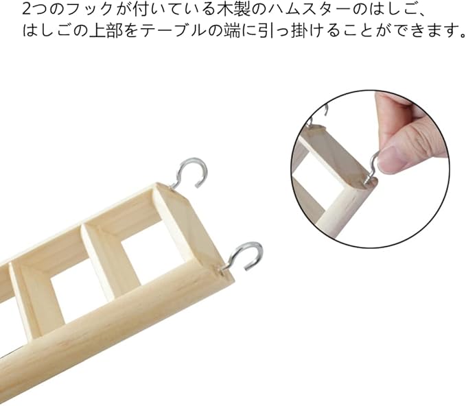 【組み立てやすい】-2つのフックが付いている木製のハムスターのはしご、はしごの上部をテーブルの端に引っ掛けることができます。ほとんどのフラットに適しており、木製のはしごをより頑丈にします。これは、げっ歯類に最適なスロープになります。