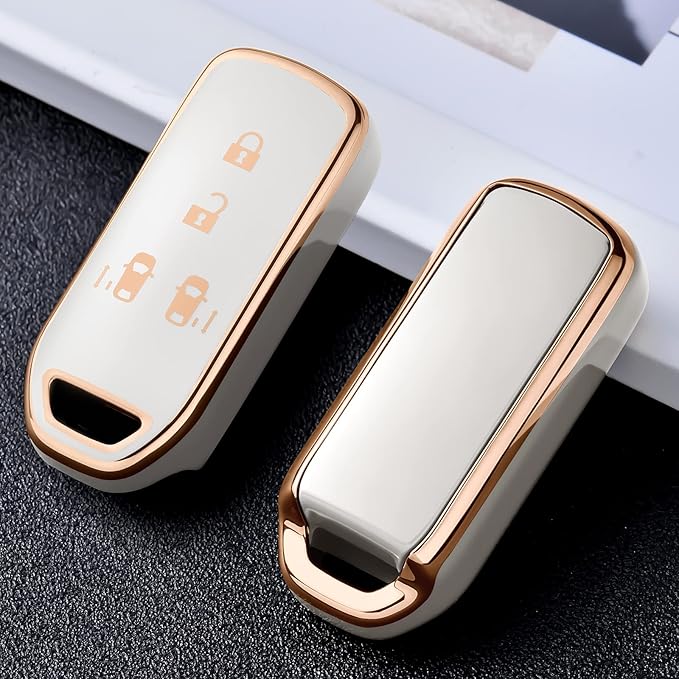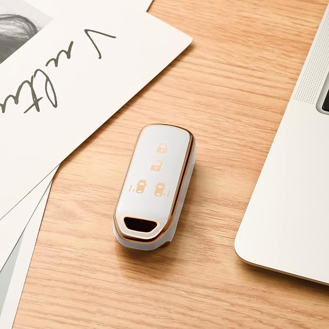 OATSBASF ホンダ N-BOXキーケース (4ボタン) ホンダ キーケース N-BOX/N-VAN/N-WGN/N-ONE キーカバー ホンダ アクセサリー tpu キーケース (金縁ホワイト)