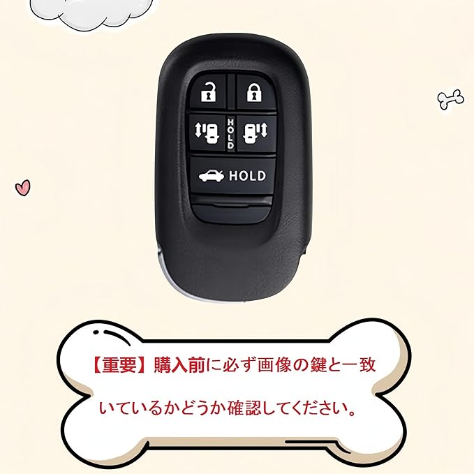 【適応車種】: (5ボタン)適合ホンダN-BOXカスタム JF5・JF6 NBOX Custom(年式:2023年10月~)、 N-BOX JF5・JF6(年式:2023年10月~)、 新型 ステップワゴン 、 ステップワゴン e:HEV スパーダ 、ステップワゴン スパーダ ガソリンモデル [STEPWGN RP6/7/8] (年式:2022年5月〜)、 新型 ヴェゼル ヴェゼルe:HEV VEZEL、 ヴェゼルRV系 E:HEV 型式:RV3 RV4 RV5 RV6 (年式:2021年4月〜) 、 新型 CIVIC シビック ハッチバック 型式:FL1 (年式:2021年8月〜) 、シビック タイプR (年式:2023年〜)、 CIVIC シビック e:HEV (年式:2023年〜)、ZR-V [ZRV] 型式:RZ1 / 2 / 3 / 4 / 5 / 6型 (年式:2023年4月~)。※ 年式により異なる場合がありますので、画像のキーの形状をご確認下さい。 画像のキーの形であれば適合です。【重要】購入前に必ず左の画像の鍵と一致いているかどうか確認してください。
