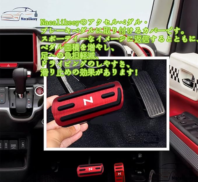N-BOXペダルカバー Nacalikeey ホンダ ペダルカバー NBOXブレーキペダル Honda Nシリーズ nboxアルミ ペダル 全NBOX車種対応NBOX JF1-JF9 車用Nワン JG1/JG2スポーツペダル似合う N-ONE/N-WGN/Nbox車種 3点セット(赤い)