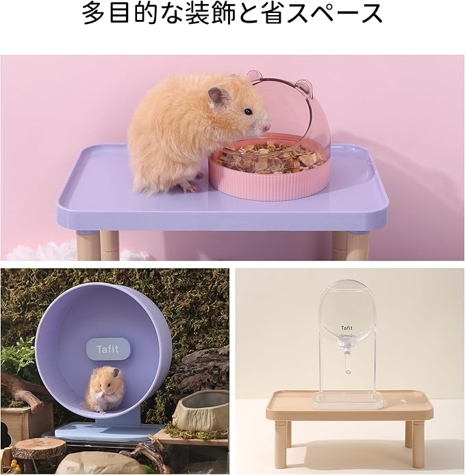 簡単な組み立てと高さ調整可能:Tafitハムスタープラットフォームは約19 25cm(縦 横)のサイズで、高さは約9cmと約15.5cmの2段階から選択可能。差し込み式デザインで簡単に設置でき、敷材の厚さやスペースに応じてサポートパーツを自由に積み重ねて調整できます