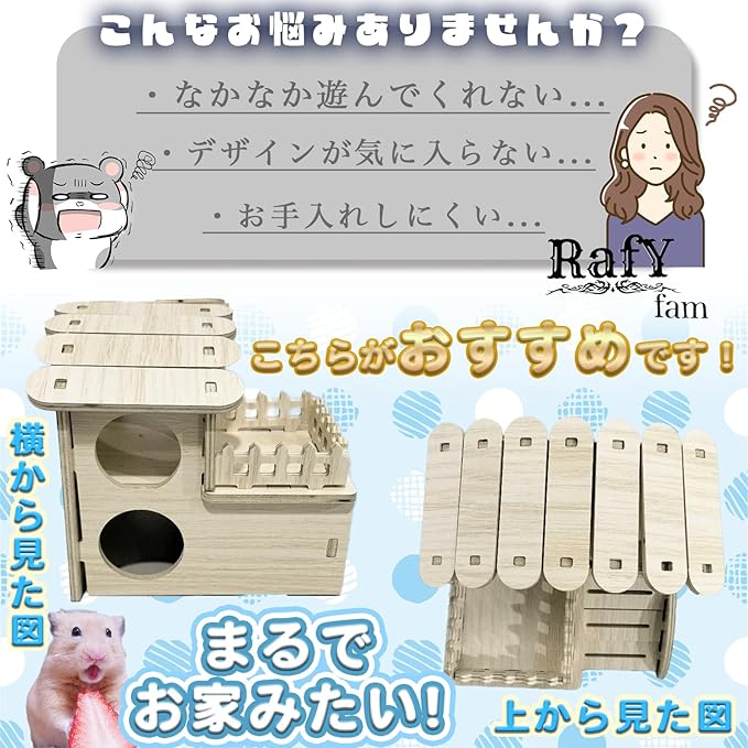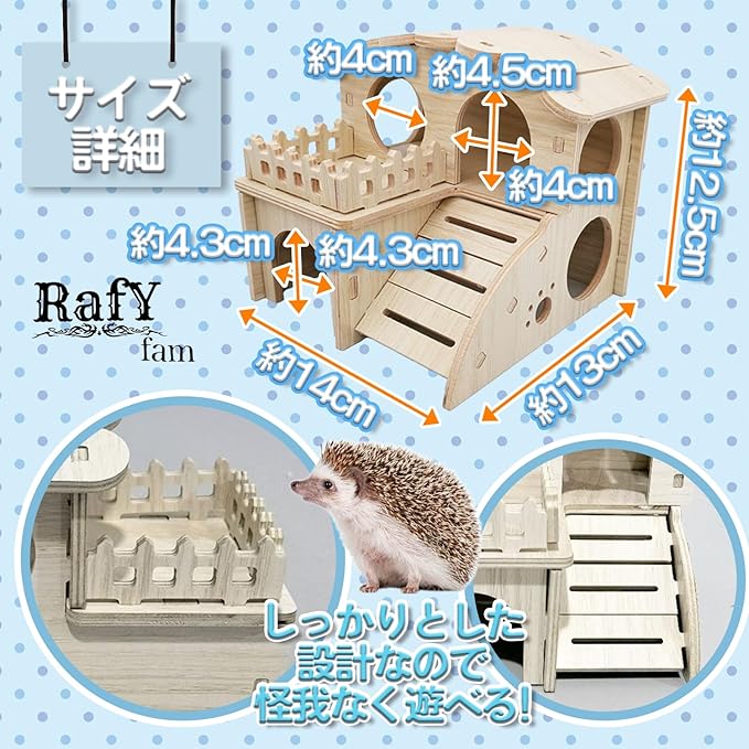ハムスター 巣箱 2階建て ハウス ステップ 木製 モモンガ シマリス 小動物 遊び場 踏み台 おもちゃ 覗き見