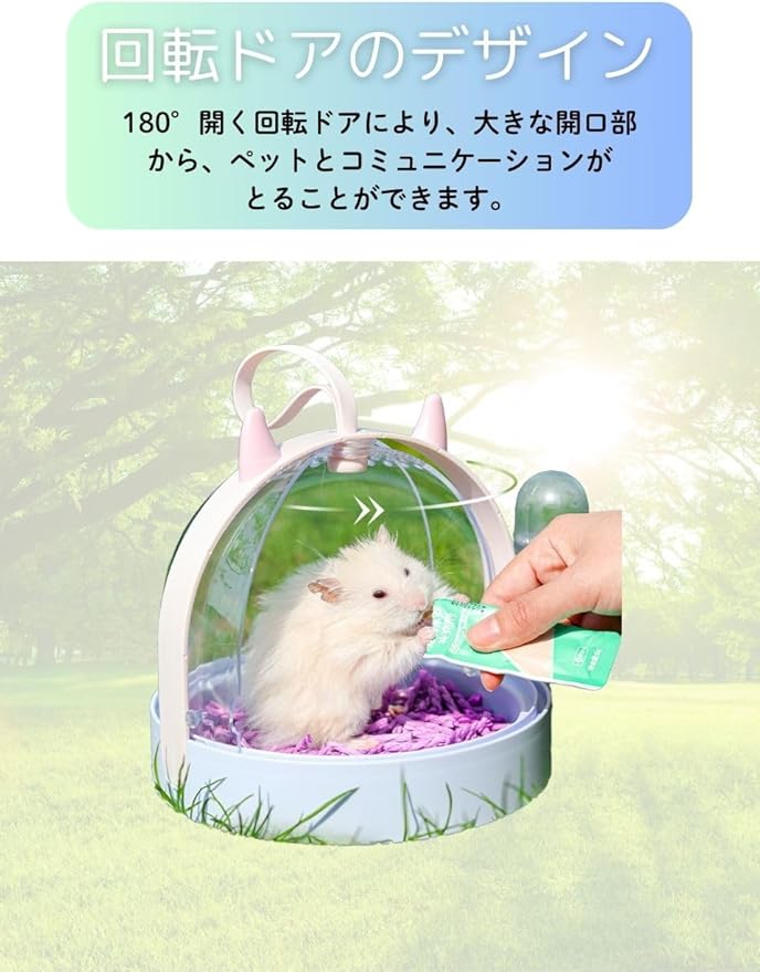 ハムスター キャリー 給水 お出かけ ケージ ケース バッグ 旅行 散歩 病院 移動 掃除 小動物 (パープル, A)