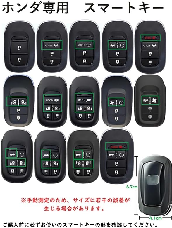 【適応車種】ホンダ専用 新型Civic(シビック):SI/EZ/EP/EG/EX/シビック ハッチバック型式:FL1(2021~)FL4/タイプR FL5(2023-2024)/シビック スポーツ;アコード(Accord)(2022-2024);ヴェゼル(VEZEL):RV系:RV3 RV4 RV5 RV6(2021~2024)/ヴェゼル ガソリンモデル(2022-2024);新型ステップワゴン:ステップワゴン/ステップワゴン スパーダ ガソリンモデル(2022-2024)/RP6 RP7 RP8;パイロットPilot EX-L;ENS1(2022);ZR-V RZ系:RZ1/2/3/4/5/6(2023~);HR-V;CR-V;ツーリング(Touring)(2024);NBOX(2023~)JF5 JF6/N-BOX カスタム などに適応します。※グレードや年式によって適合しない場合があります。お使いのスマートキーの形状を必ず確認ください(写真参照)。画像のキーの形であれば適合です。※上記車種以外でも鍵の形状が合えば取り付け可能になります。