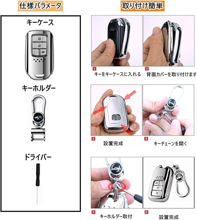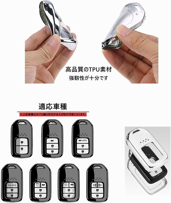 【上質な材料】:ホンダ スマートキーケースにはTPU素材を採用しており、シリコンよりも固く、ハードケースより柔らかい弾力性のある素材です。つやつやした表面で曲げても割れない新素材です。TPU素材のキーケースはオイル耐性、耐水性、カビ耐性、防塵性があります。自動車の鍵を腐食や破壊からしっかり守られ、鍵の形状を保つことができる。 万が一、鍵が落ちた時、キーケースも鍵が壊されないように保護することができて、着地緩衝の効果があります。手触りが非常に柔らかい。さらに高級感が溢れます。素材・造りの良さで多くの皆様に高く評価いただいています。愛車の専用設計でフィット感抜群です。