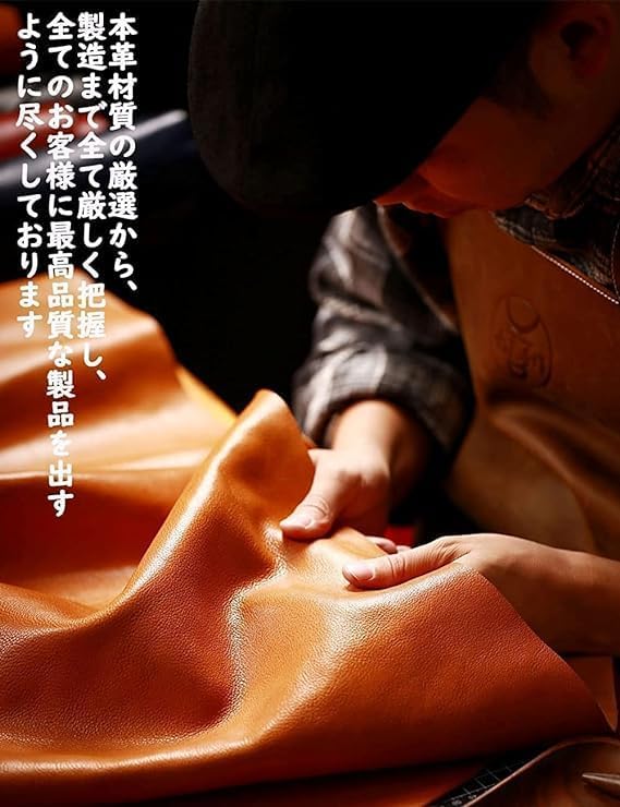 【上質のレザー素材】上質のクレージホースレザーを採用します。生き物からいただいた革は、肌の温もりや安心感も与えてくれる優しい天然素材です。このレザー製品はキズが目立ちますが、使い込むほどに艶が出てきます。