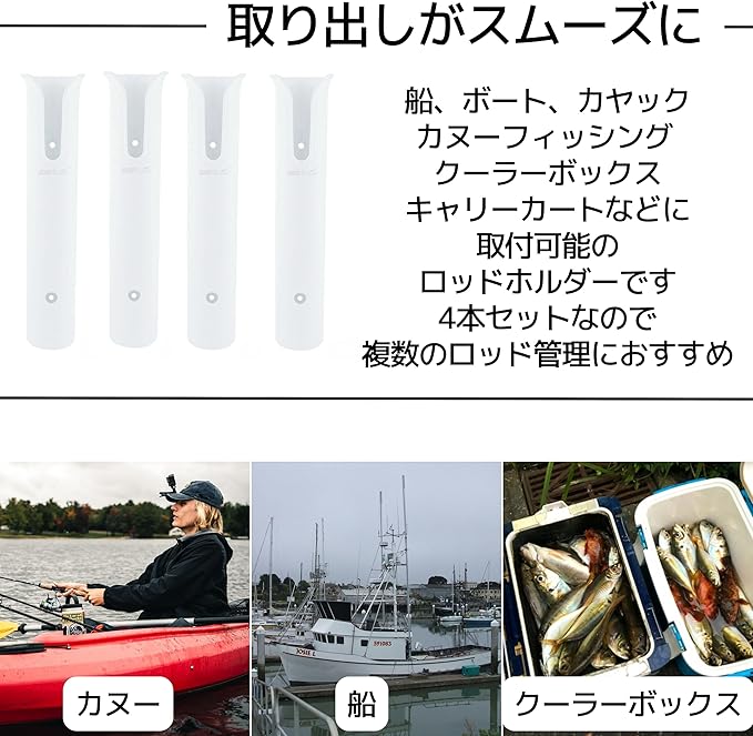 【取り出しがスムーズに】船、ボート、カヤック、カヌーフィッシング、クーラーボックス、キャリーカートなどに取り付け可能なロッドホルダー。