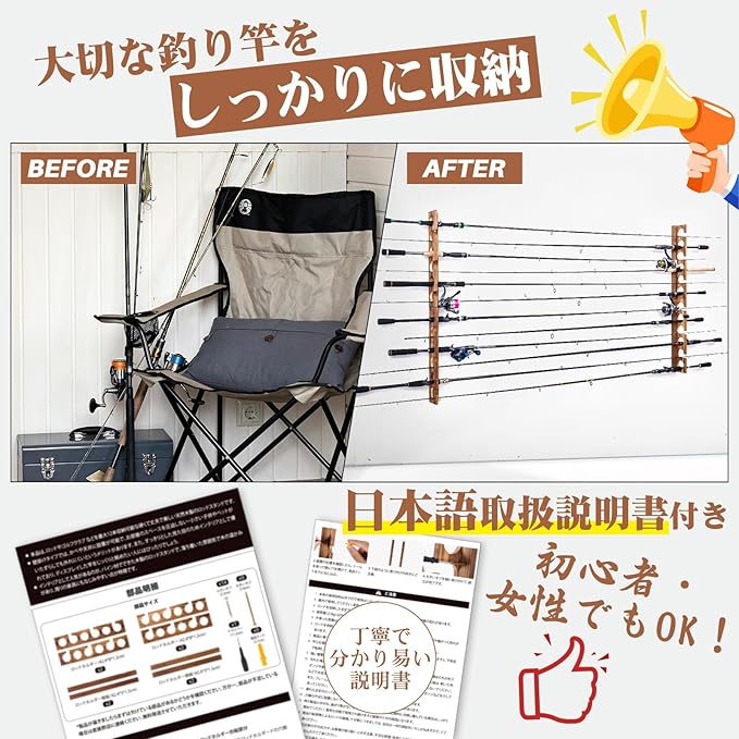 Goture(ゴチュール) 壁掛け式ロッドスタンド 【日本語取扱説明書付き 天然無垢材】 24本立て 釣竿収納 竿置き コンパクト ロッド スタンド 木製 組立簡単 釣り竿ラック 釣り竿ディスプレイラッ ロッド 取り外し可能 釣竿収納 フィッシング 釣り [並行輸入品]