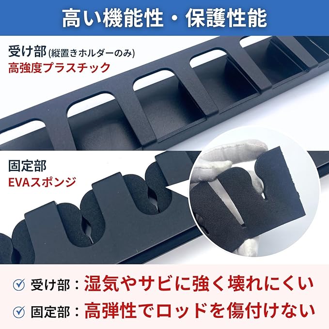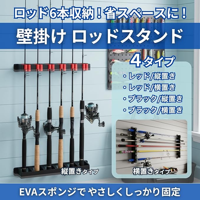 最大6本収納できるロッドスタンド(ラック)です。 縦置きと横置きをご用意しているのでお好きな方をお選びください。