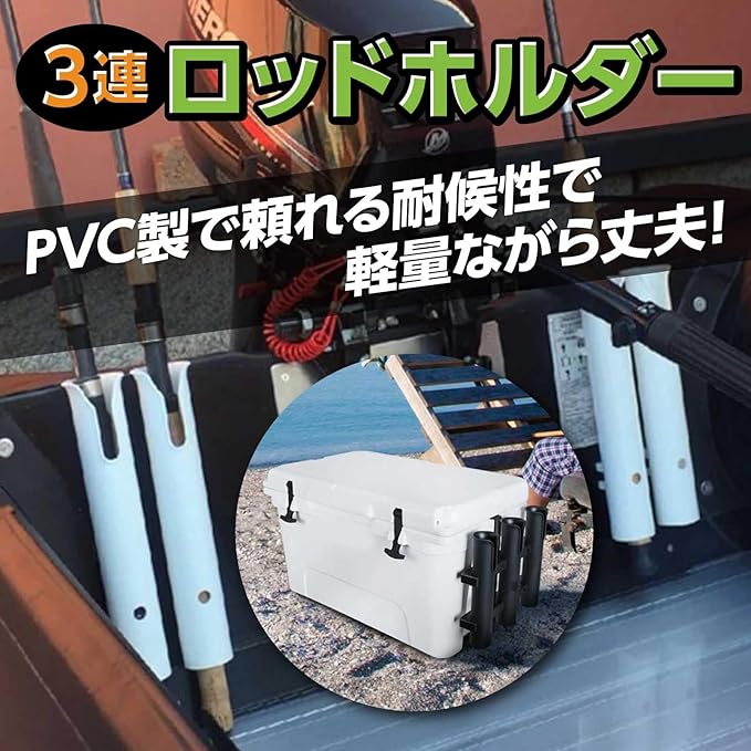 ✅【便利な3連ロッドホルダー】釣りの便利グッズ、樹脂製で軽量な3連ロッドホルダーです。PVC製で軽量かつ耐候性があり、錆びや劣化もなく丈夫さが持続します。