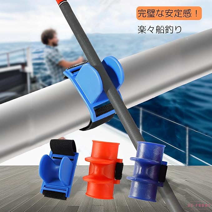 船用ロッドホルダー / ロッドクリップ ベルクロ式 竿置き 釣竿固定 海釣り ボート 堤防 簡単取り付け